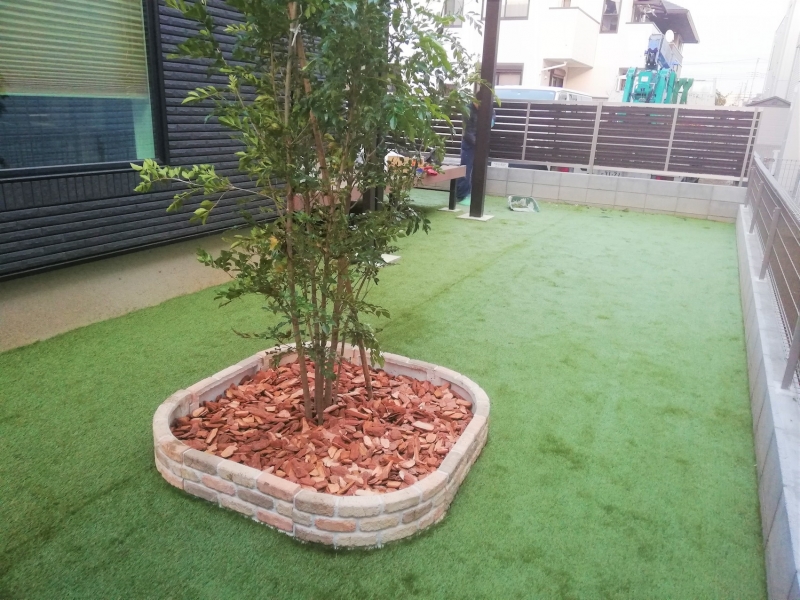 お客様のご要望にお応えすべく、人工芝施工だけでなくレンガも工事しました。