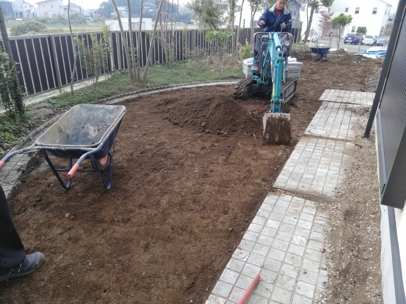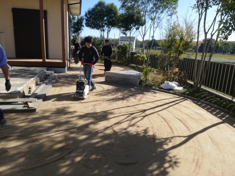 お庭が広くてドッグランとして使用される場合、そこから砕石を3トン入れて重機で転圧します。