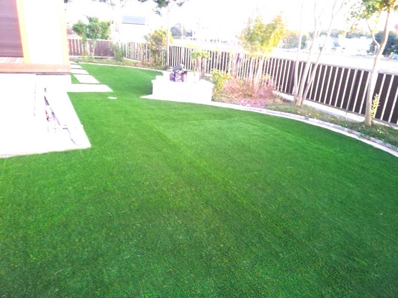今回設計事務所様からのご依頼で、犬でも安全な遮熱効果のある人工芝を使用しました。