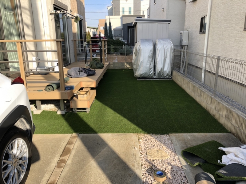 こちらのお客様は一度、他の外構業者に人工芝をご依頼したようなのですが、あまりに酷い出来栄えでショックを受けておりました。