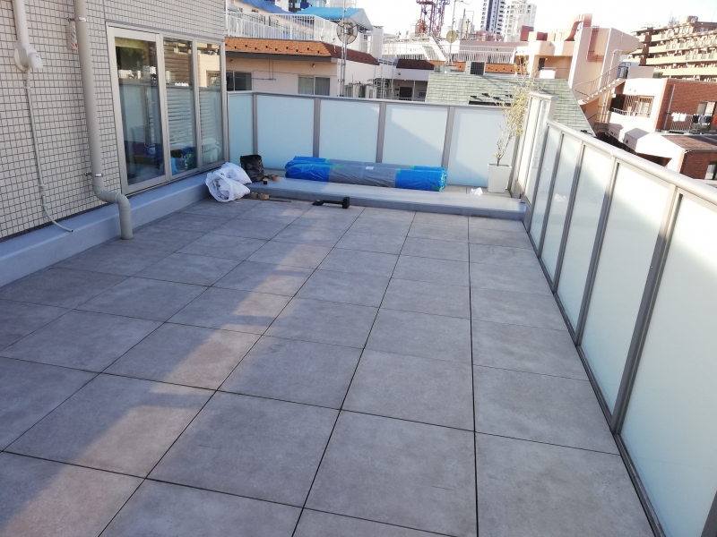 この事例は東京都のマンションテラスへの人工芝施工です。