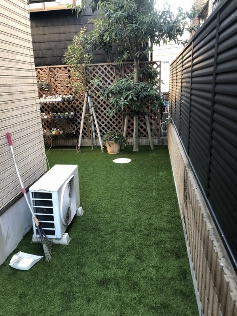 人工芝のお庭にすると、大変だった雑草取り、毎週の天然芝狩りから解放されます。 個人的にははだしのままフラフラっと外に出られるのが人工芝のメリットです。 最近自宅のベランダに自分で人工芝工事した経験者が語ります(笑)