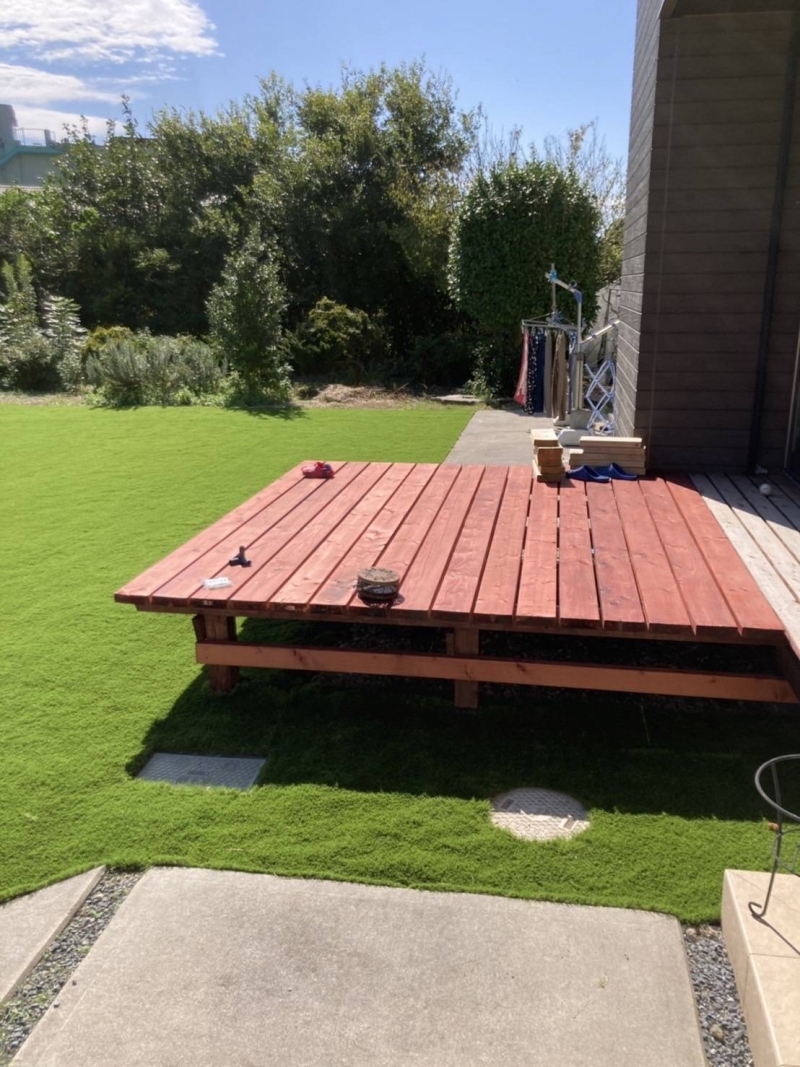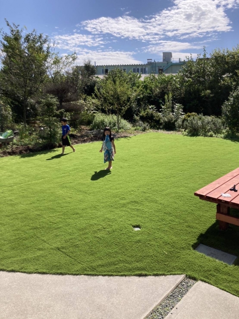 (お子さんが嬉しそうに出来上がったお庭の上をぴょんぴょんはねていました。笑)