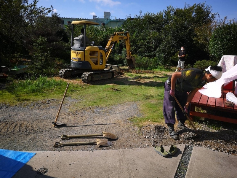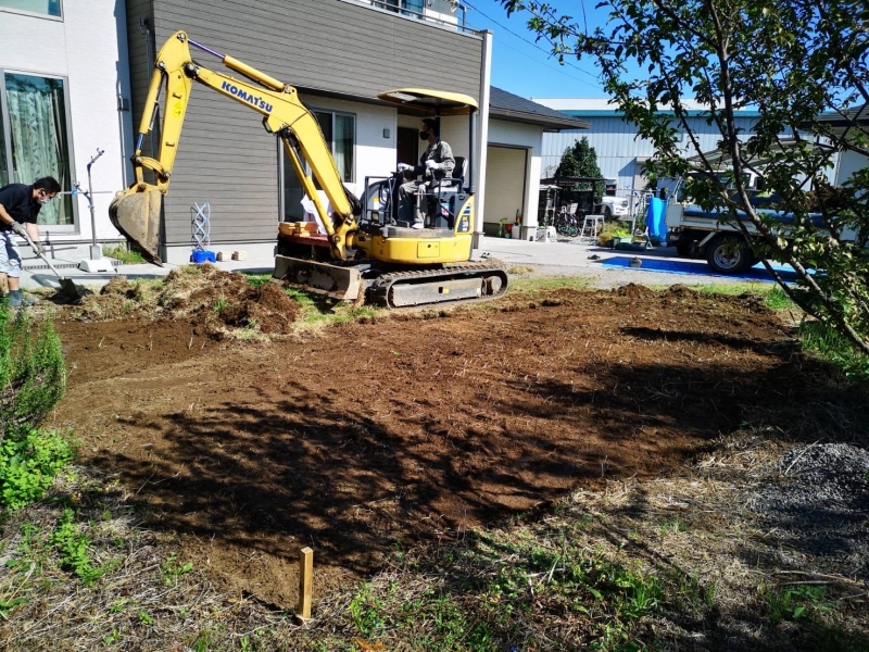 手作業だと腰にきますが、重機を使用すると掘削まで機械がやってくれるので体力は温存できます。