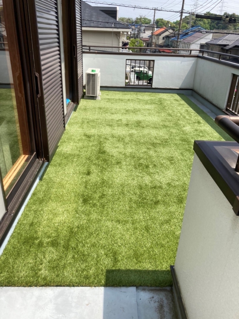 屋上にドッグラン工事のご依頼を頂きました。 誠に有難うございました。 今回は、屋上全面ではなく、一部を人工芝工事致しました。 人工芝にすると、グレー色だった屋上が華やかになります。 ご注文ありがとうございました!