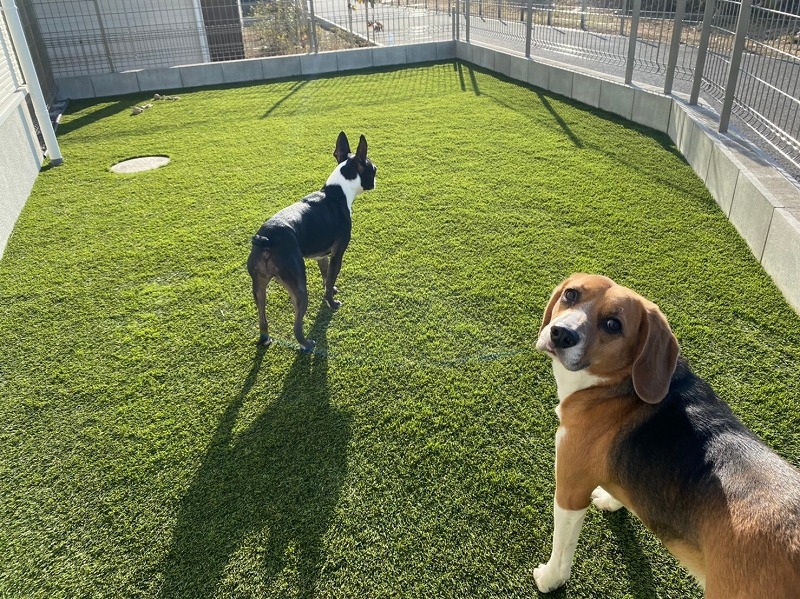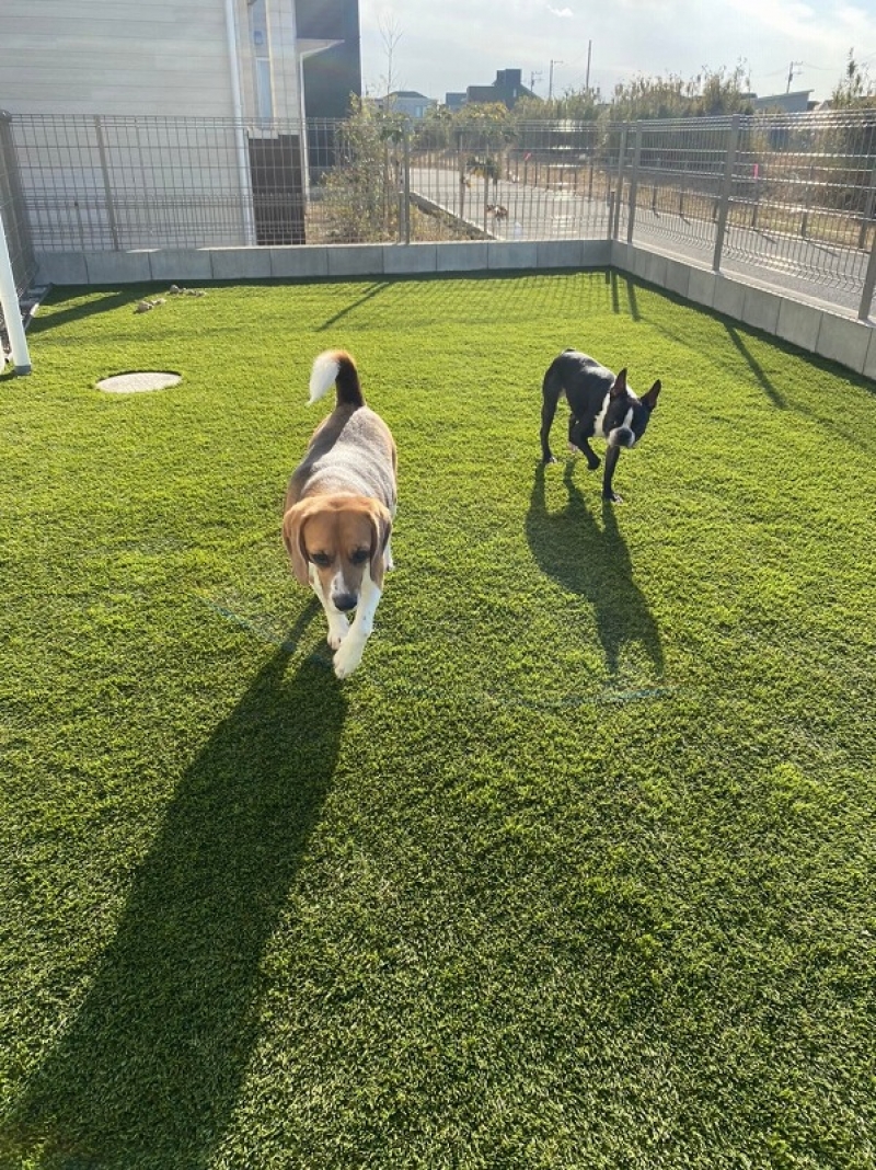 愛犬2匹のためにドッグラン工事をご依頼いただきました☆ カメラ目線が可愛いです。 ご注文有難うございました☆