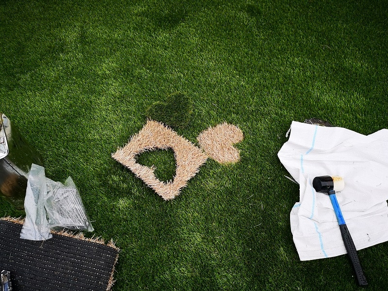 ワンポイントカラー人工芝工事では、ハート型も選んでいただけます♡ 今回はハートを3つ並べた形にしました。 ご注文有難うございました☆