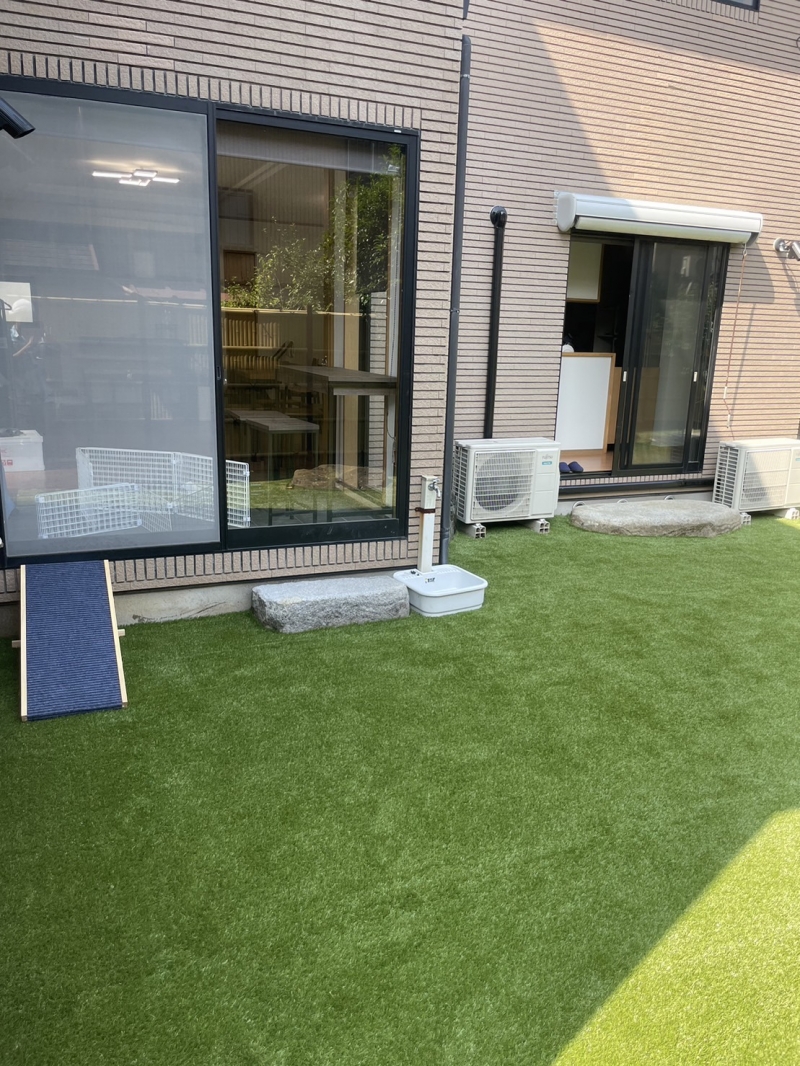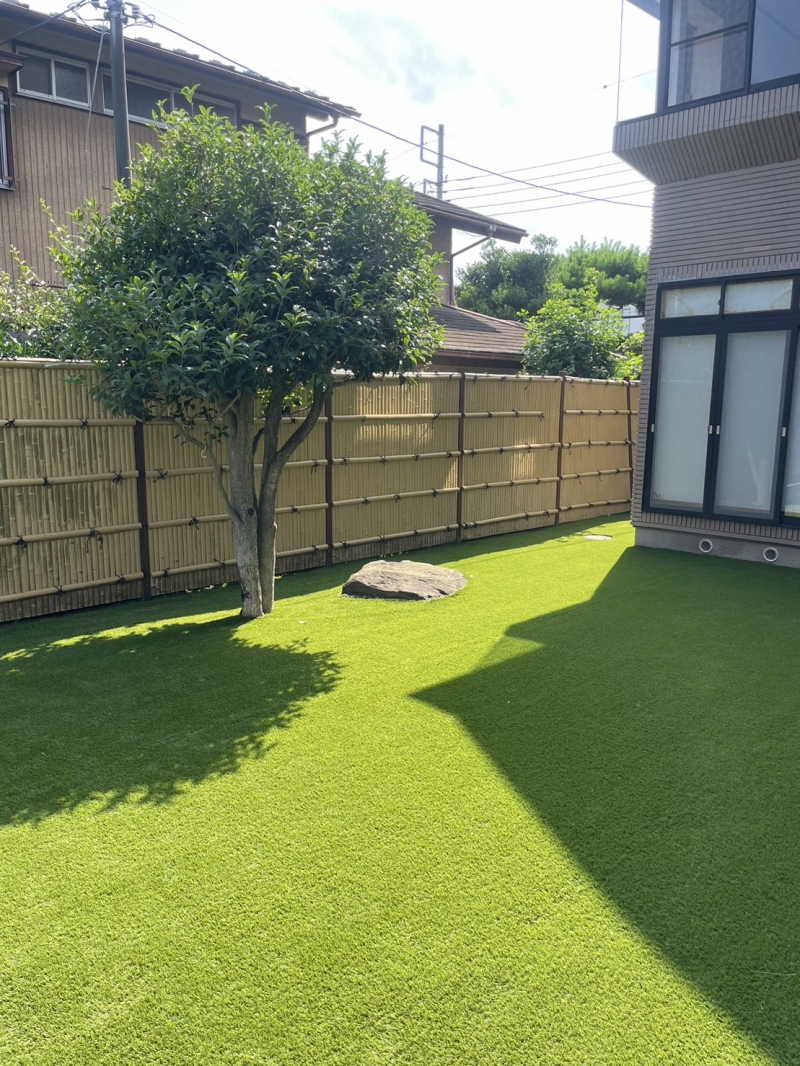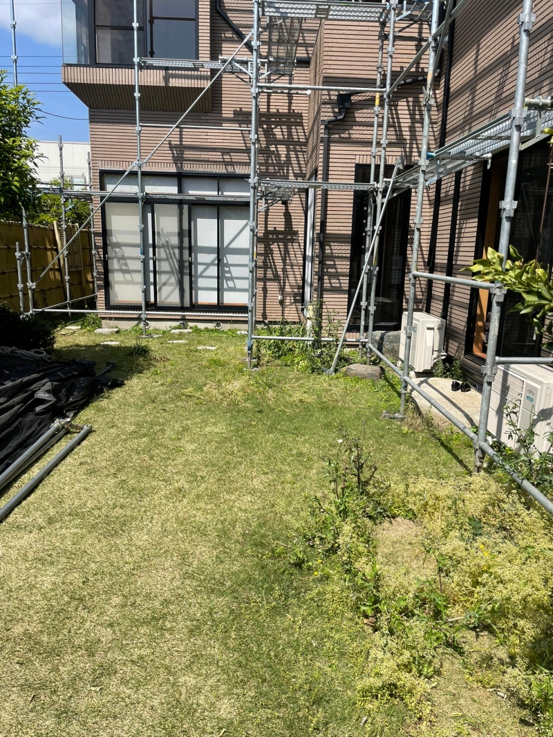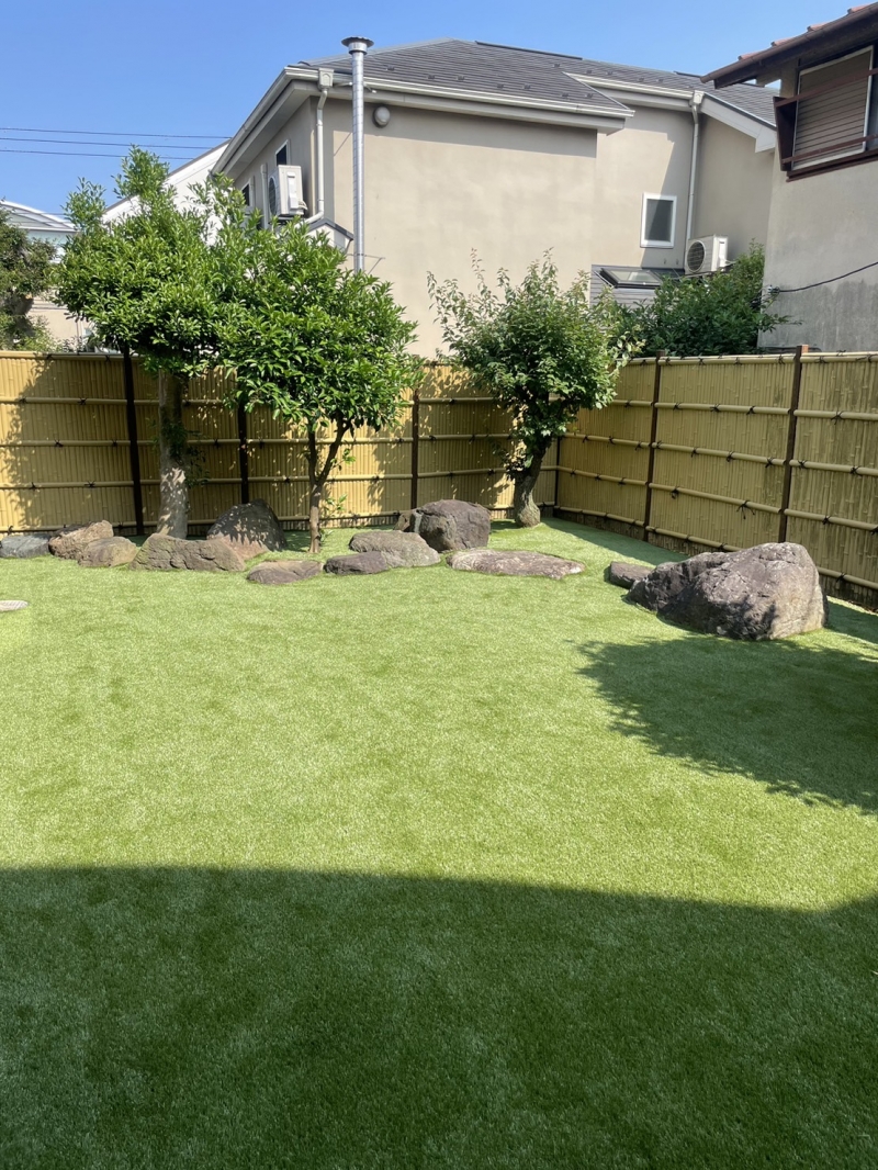 今回は調布市の専有庭に人工芝工事に行ってきました! お子様もいて、お庭のお手入れも大変なため人...