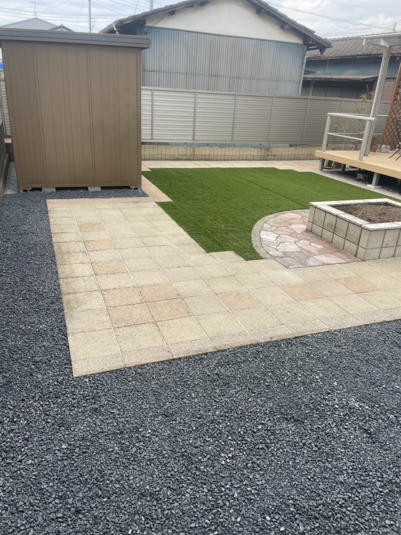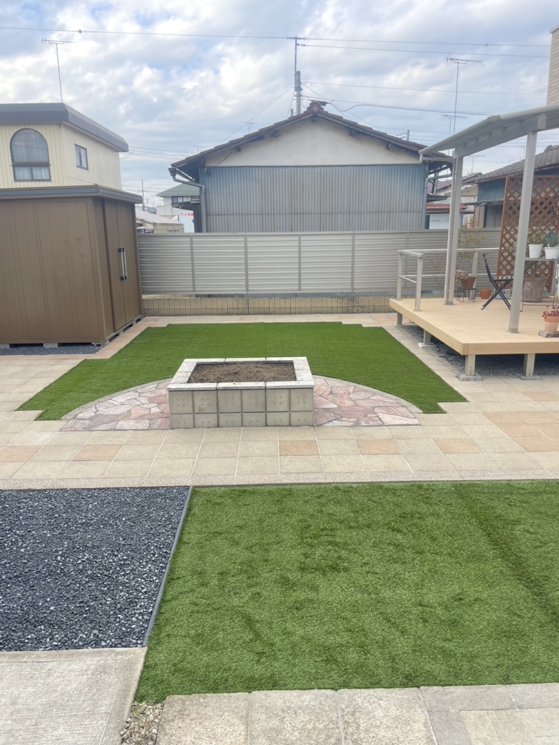 また元からありましたお客様がセレクトした石畳も地面の色も人工芝の色とマッチしていて、とてもきれいですね☆ 家族で、お庭での思い出もたくさん作ってほしいです^^