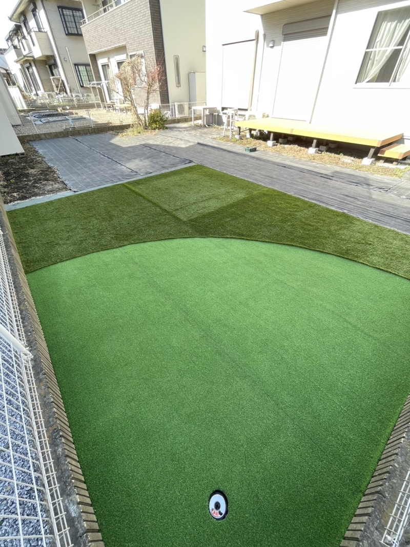 結城市にパターゴルフ人工芝工事に行ってきました^^ ももちろん手作業でカットしますので、お好きな形にカットできますよ♡ パターの大きさについても縦横の長さをご相談いただけます。 いつも通っているパター練習場に近付けたい、という方も多いです。 自宅のお庭で、ゴルフを楽しめるのはとても有意義ですよね!