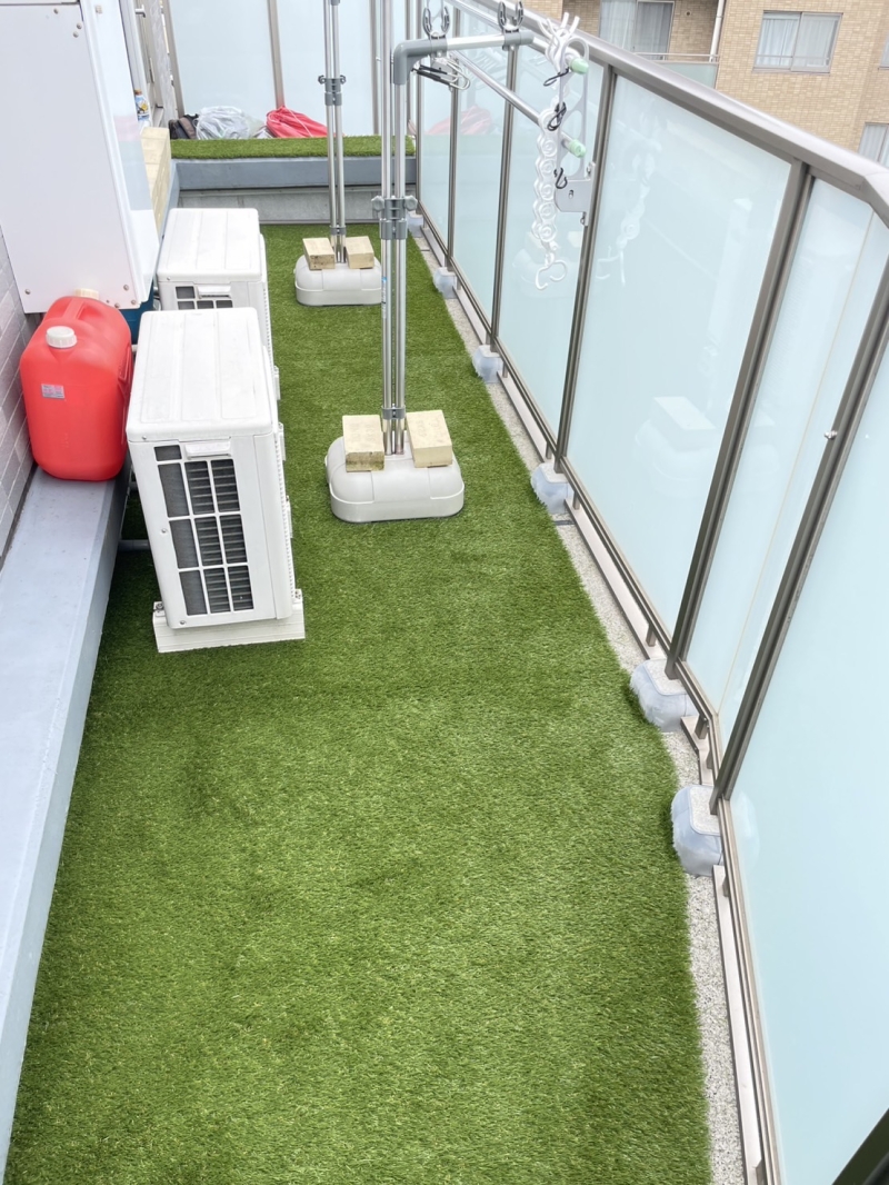 渋谷区のマンションのベランダに人工芝工事を行ってきました! ベランダは、洗濯物を干すぐらい?と思う方いるかと思いますが 人工芝を敷設したら、洗濯物を干すときにサンダルを履かなくてもいいですし←ズボラ?(笑) 夏場の夜はベランダでビールを飲んで涼んだり?
