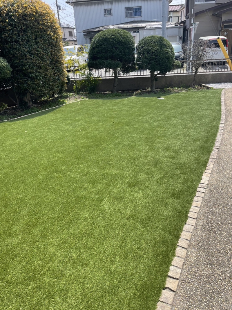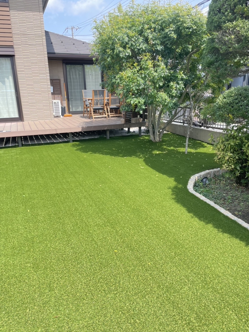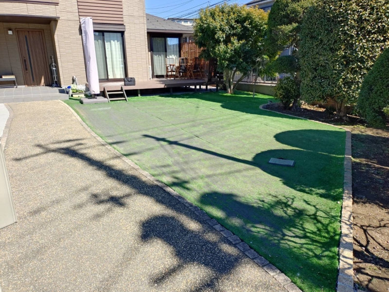今回は、千葉県市川市のお庭(123㎡)に人工芝施工を行いました。 既存のお庭には、天然芝をはじめ、...