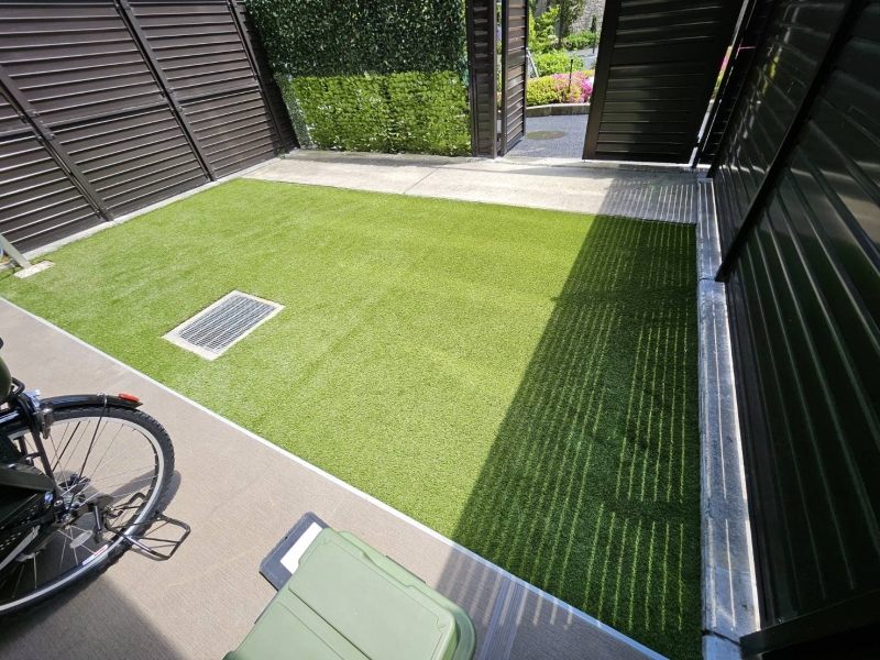 今回ご相談いただきました人工芝はマンションのテラス部分の雑草対策かつ景観改善のため、マンション管...