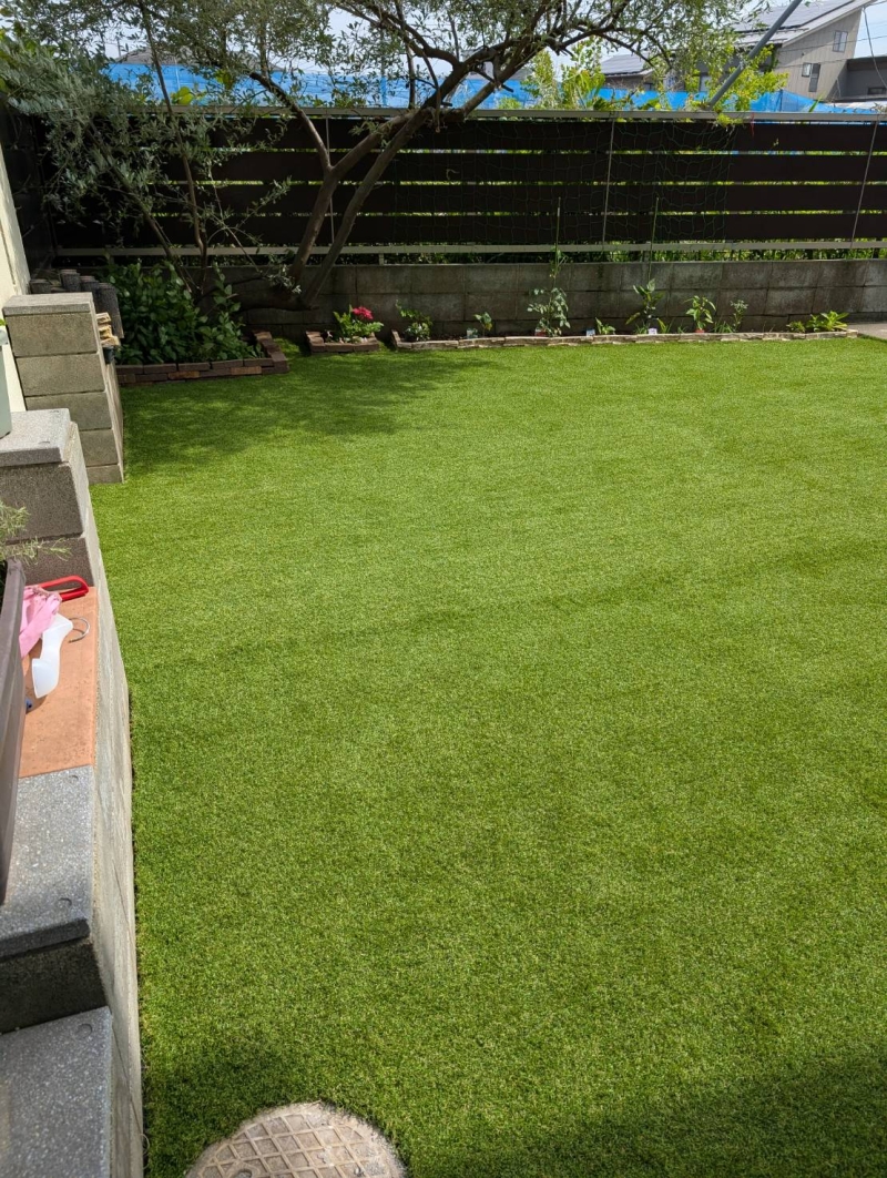 本日、千葉県にあります市川市に人工芝工事へ行ってきました^^ 今回は、遮熱人工芝で工事を行いました! 遮熱人工芝は、人工芝の中でスペックが高く お値段は少し高くなってしまいますが、、、 遮熱効果に加え、静電気抑制・抗菌・防臭・防カビ機能が付いております。