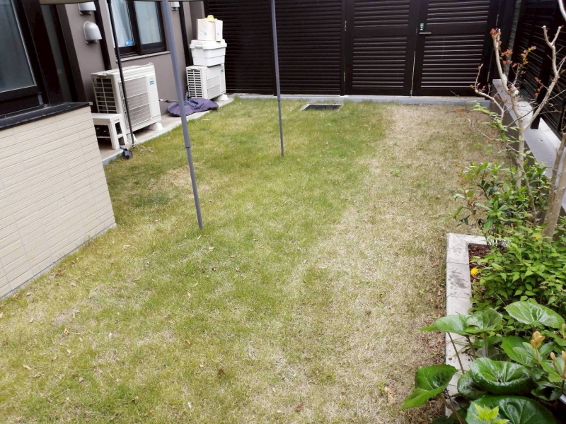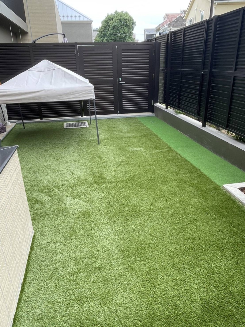 横浜市にて、人工芝工事を行いました。 砂と土の状態でお引渡しされていた 48.22㎡のお庭に、30㎜人...