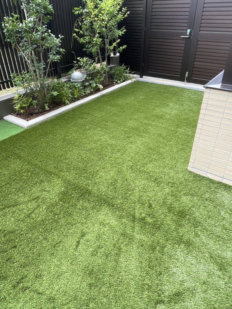 昨日、練馬区でマンションのお庭で人工芝工事を行いました お庭25.6平米のお庭を30㎜人工芝にしてきました^^ 内一部をパター芝工事も併せて工事しました♩ 元々あります植栽スペースが素敵なのもありますが 天然芝が人工芝に変わり、より緑が映えてきれいになりましたね☆