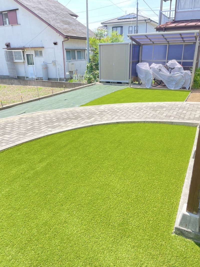 30㎜人工芝工事と見切り材工事を行いました! とてもスッキリしたお庭になり、気持ち良いですね。 before写真も掲載しますので、見比べて頂けたら嬉しいです^^ 今後とも、よろしくお願い致します♩