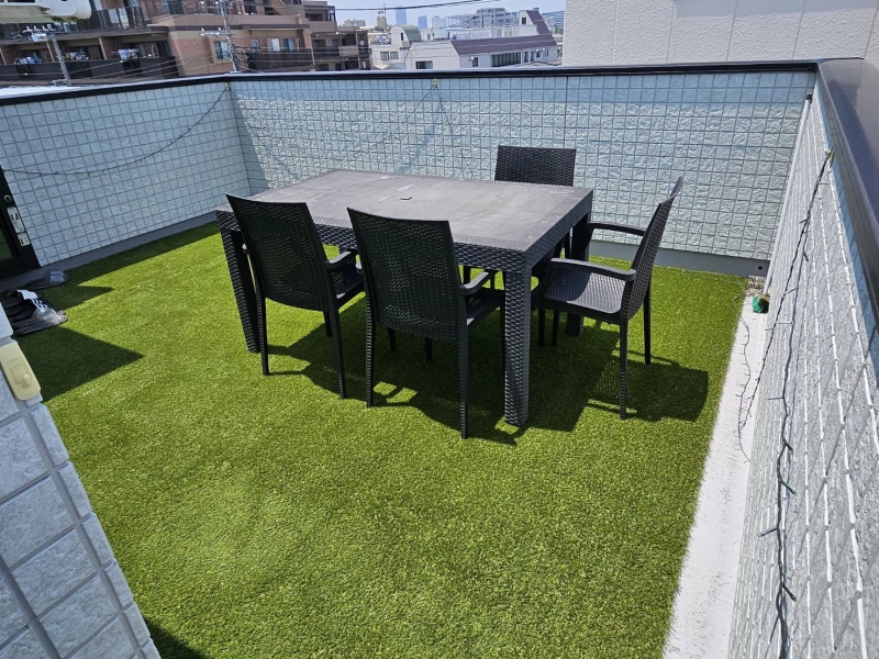 先日、江戸川区の屋上に人工芝を設置してきました! 屋上を人工芝にしたことで、おしゃれでリラックスできる景観になりましたね^^ 晴れた日には、外でランチやディナーも楽しめます。 (現在は、真夏で暑すぎてしまいますが夜頃には涼しくなるので、星を見たりと楽しめそうですね☆彡)
