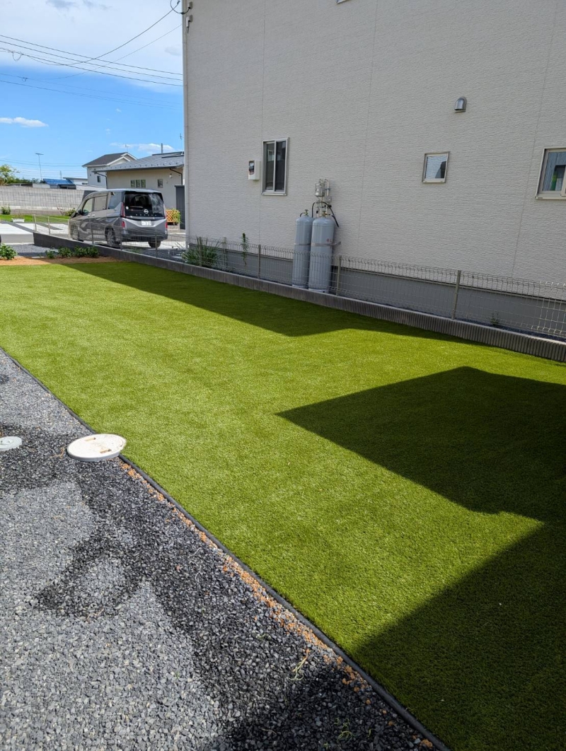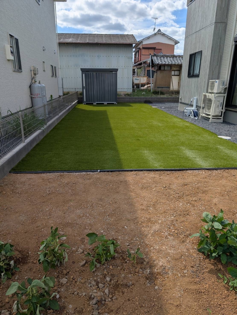 昨日、行田市のお庭に人工芝工事と併せて倉庫・見切り材工事も 一緒に行わせて頂きました^^☆ 45.2平米ある広いお庭だったのもあり、2日間に分けて工事しました!