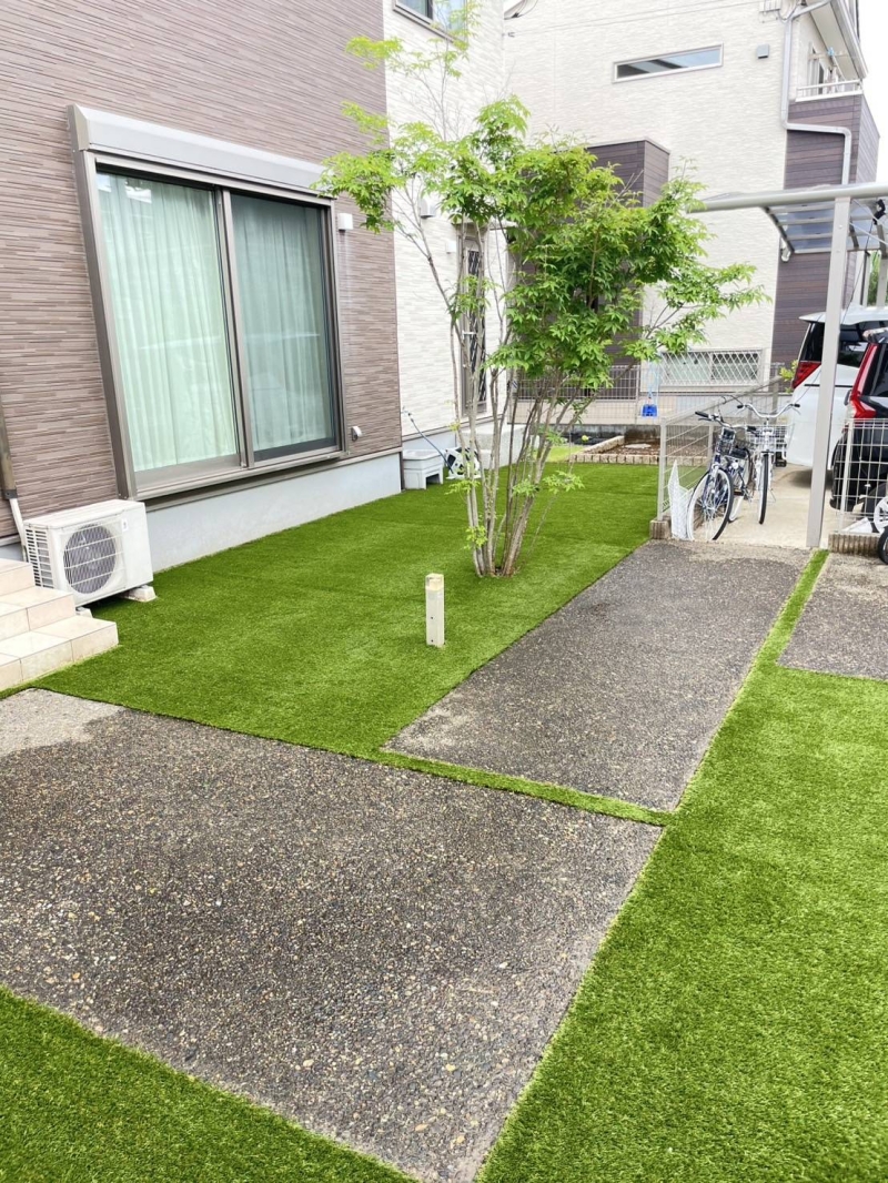 ここ最近工事にお伺いさせていただいた、カラー人工芝を使用した事例です。 こんな柄もできますか?とい...