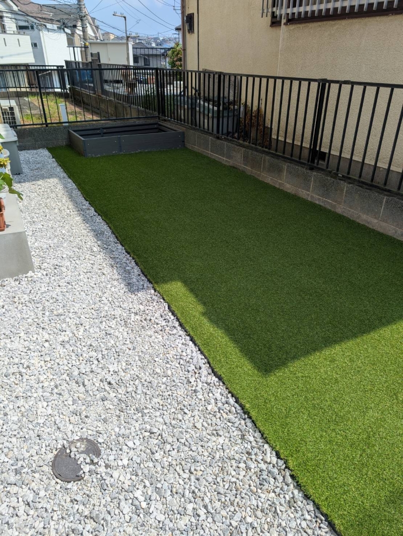 今回は久喜市にて、 お庭約18㎡の人工芝工事を行いました。 既存は天然芝のお庭でしたが、管理のし...
