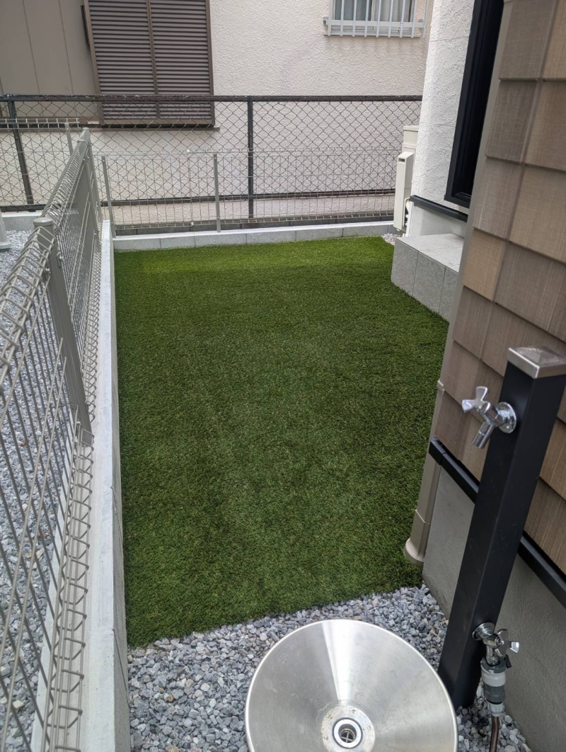 先日は、越谷市に人工芝工事へ行ってきました! 弱天然芝6.8平米を人工芝に工事しました^^ 見た目もスッキリしましたね、遊びの幅も広がると嬉しいです♩