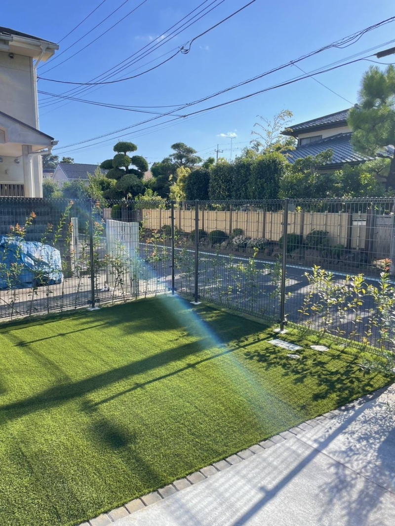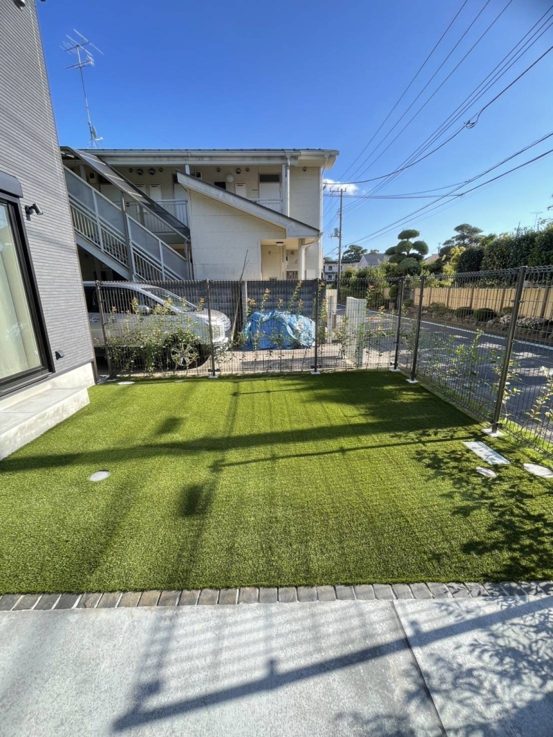 先日、小平市に人工芝工事へ行ってきました! 新築のきれいなお庭で、、、 天然芝があったお庭を人工芝に工事しました☆彡 人工芝にしたことで、植栽がより 映えて見えますね^^