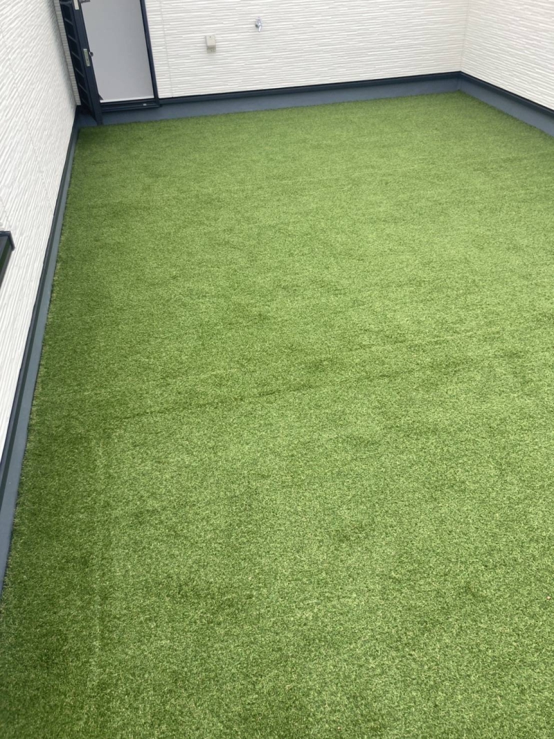 さいたま市にて、22㎡の遮熱人工芝敷設工事を行いました。 併せて、19.4㎡を防草シート+砂利仕上げと...