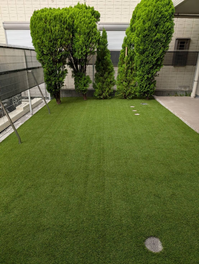 今回は、30㎜人工芝で工事しました!! 毛足もしっかりしているので、耐久力もありお値段も抑えめなの...