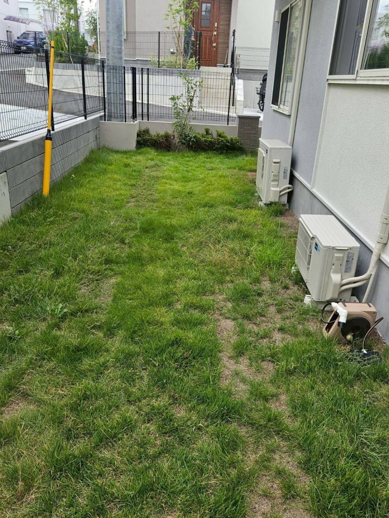今回は横浜市の新築のお庭で工事をご依頼いただきました。 旦那様はしばらくは天然芝を頑張って綺麗に育てて楽しまれておられたとのことですが、 去年や今年の夏、本当に暑い中で伸び続ける天然芝を見て、あきらめたそうです、、、 弊社は天然芝撤去を日本でも少ない機械を使用しております。 この機械を使用すると、均一にしっかりと掘削することができるため人工芝下地のモチが将来かなり変わってきます。