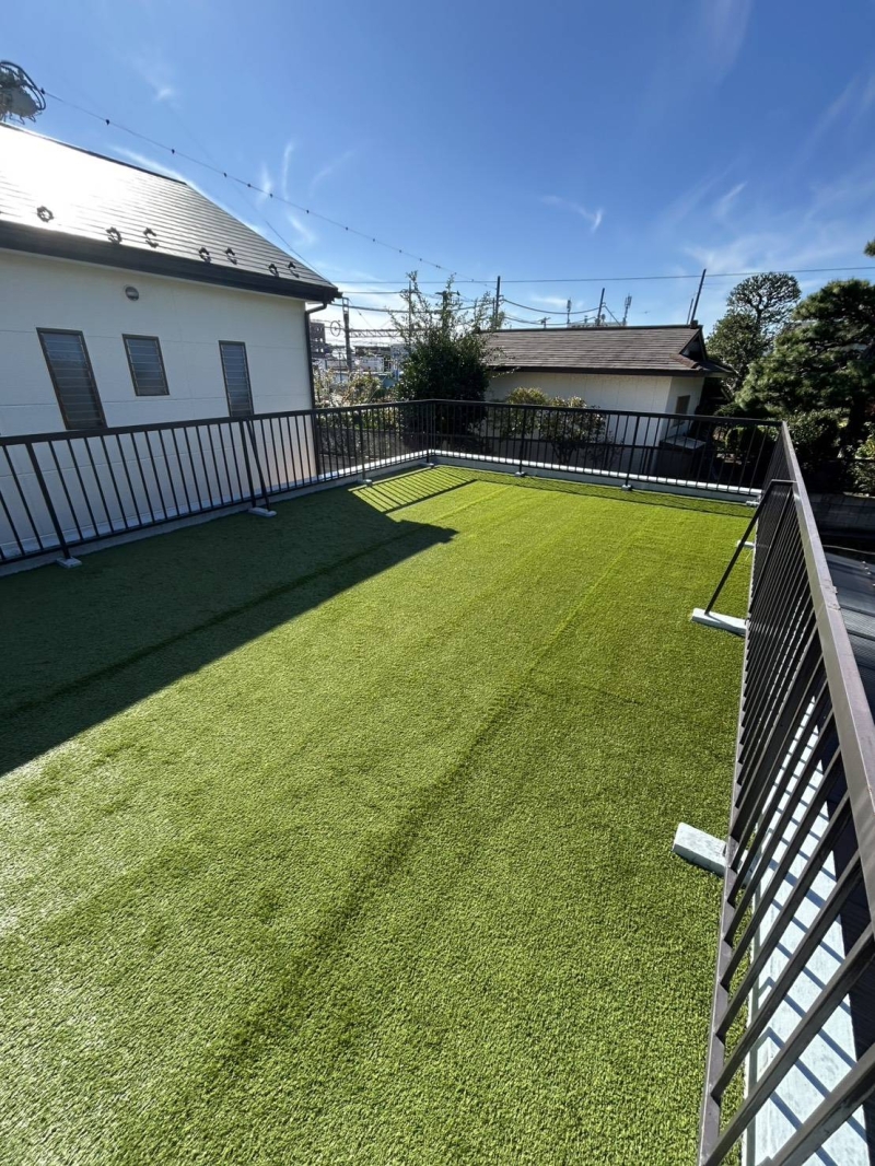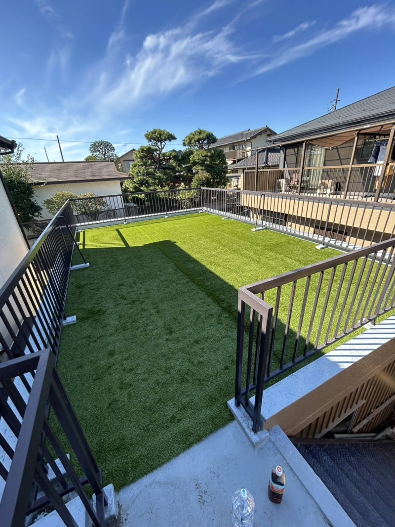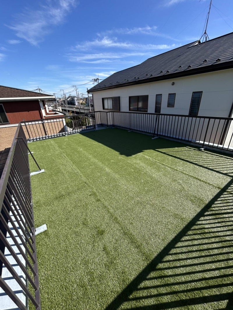 今回のご依頼は埼玉県春日部市のご自宅屋上でした。 奥様はワンちゃんのために人工芝を検討しておりました。 数ある業者の中でも弊社はバインダーウレタン工法をできる会社で、将来の撤去・補修もできながら、高い接着力もあります!