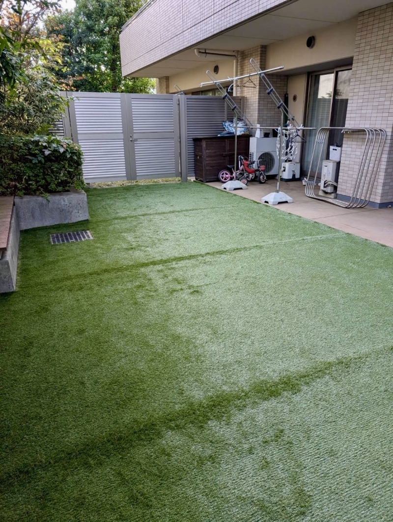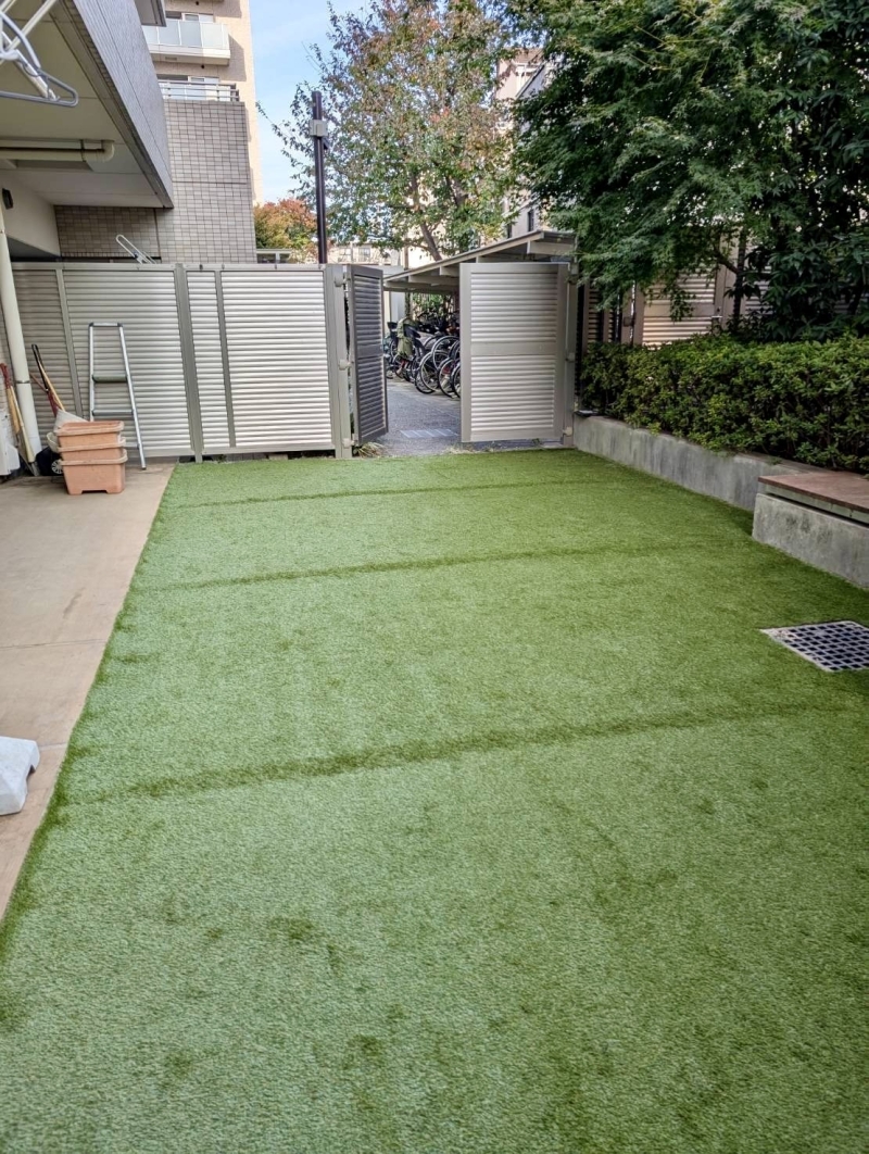 今回は、マンションの専有庭(天然芝)のお庭に 30㎜人工芝工事を行いました! 広いお庭のため、お手入れも大変だったかと思います。。 人工芝にしたことで、よりお子様の遊びの幅も広がり お庭時間もより楽しめるようになれたら嬉しいです^^