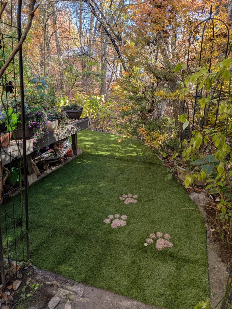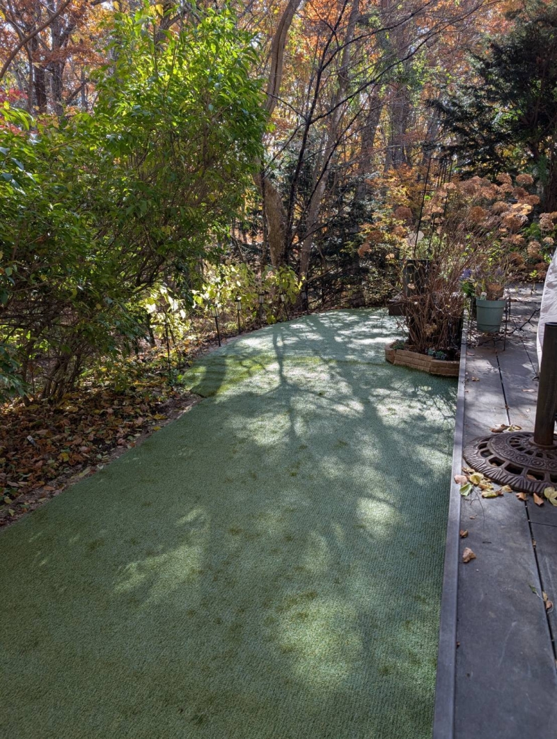 今回は、長野県軽井沢町まで工事に行ってきました! 土・雑草のお庭24.7平米を30㎜人工芝で行いました。 併せて、ラテ芝の肉球も3カ所加えました。 アクセントになり可愛いですよね^^