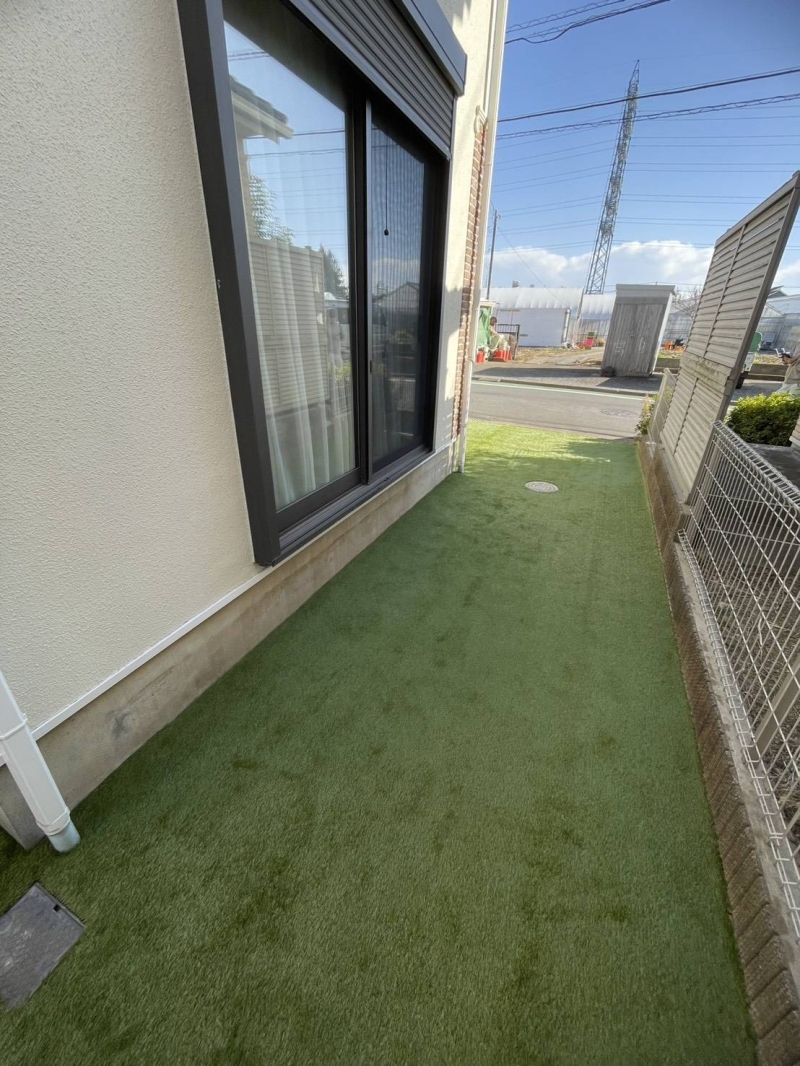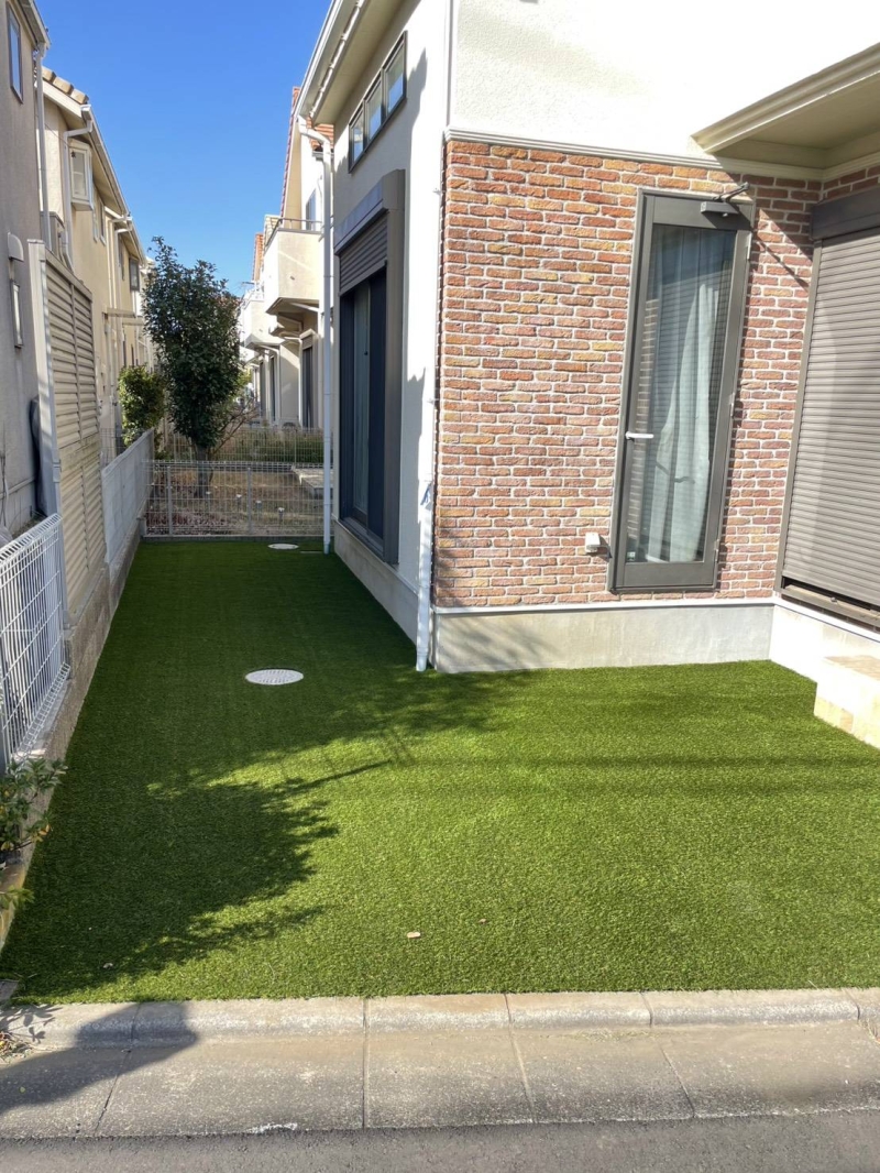 府中市にて、人工芝工事を行いました。 天然芝が敷かれていた22㎡のお庭に、 30㎜人工芝を敷設。 メンテナンスの手間を軽減しながら、 お庭全体がすっきりと整い、 外壁の美しさがより際立つ空間に仕上がりました。 この度は、 ご依頼いただき誠にありがとうございました^^