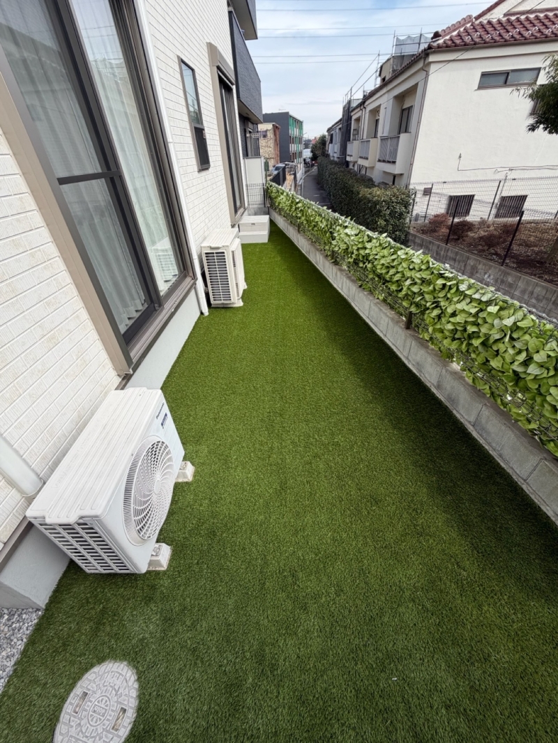 今回は、東久留米市にて15.4㎡のお庭を30㎜人工芝で施工いたしました。 まずは既存下地を丁寧に整地し、 下地をフラットに精度高く仕上げてから施工しています。 250φのマスが2箇所ありましたが、今回は嵩上げは行わず、 高さ・排水バランスを考慮しながら自然に納めました。