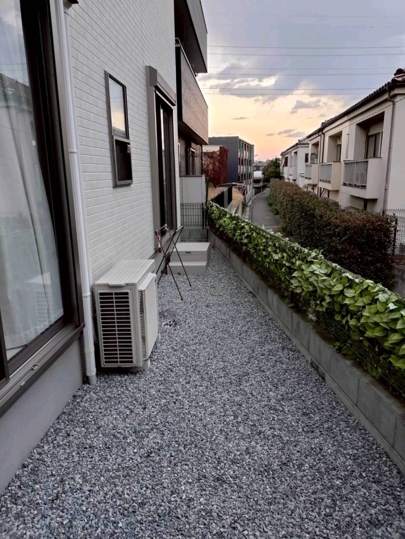 昨日、日野市で人工芝工事を行ってきました! お家の駐車スペース後ろにあります 15平米程度のお庭...