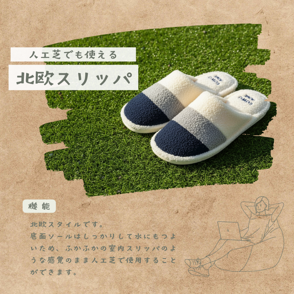 人工芝で使える北欧風スリッパ